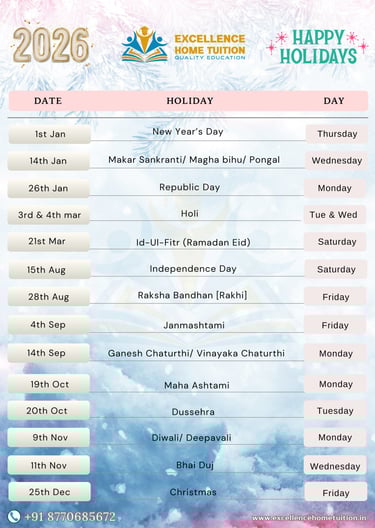 Excellence Home Tuition provides professional home and online tutoring services across all subjects and classes.